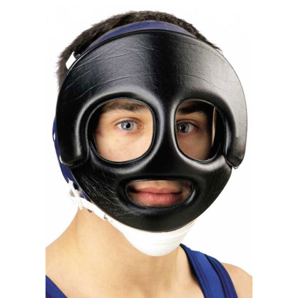 Patent pending. Designed to help protect facial injuries. Total padding on both sides. This competition model can be used in meets when there is documented evidence of injury. Now adaptable to fit any CKA headgear. Chin cup assembly included.
